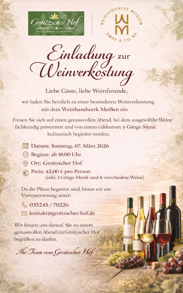 Lassen Sie sich von unserer Traditionsküche verwöhnen. Sie wollen mit ihrer Firma eine Veranstaltung durchführen, ihren Geburtstag feiern oder vielleicht läuten die Hochzeitsglocken? Kein Problem, kontaktieren Sie uns und wir sprechen gern über Ihre Wünsche. Feiern sie lieber zu Hause oder haben schon eine andere Location? Caterings können wir auch!